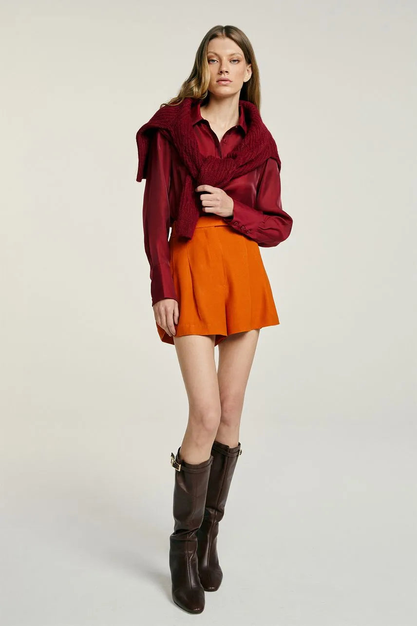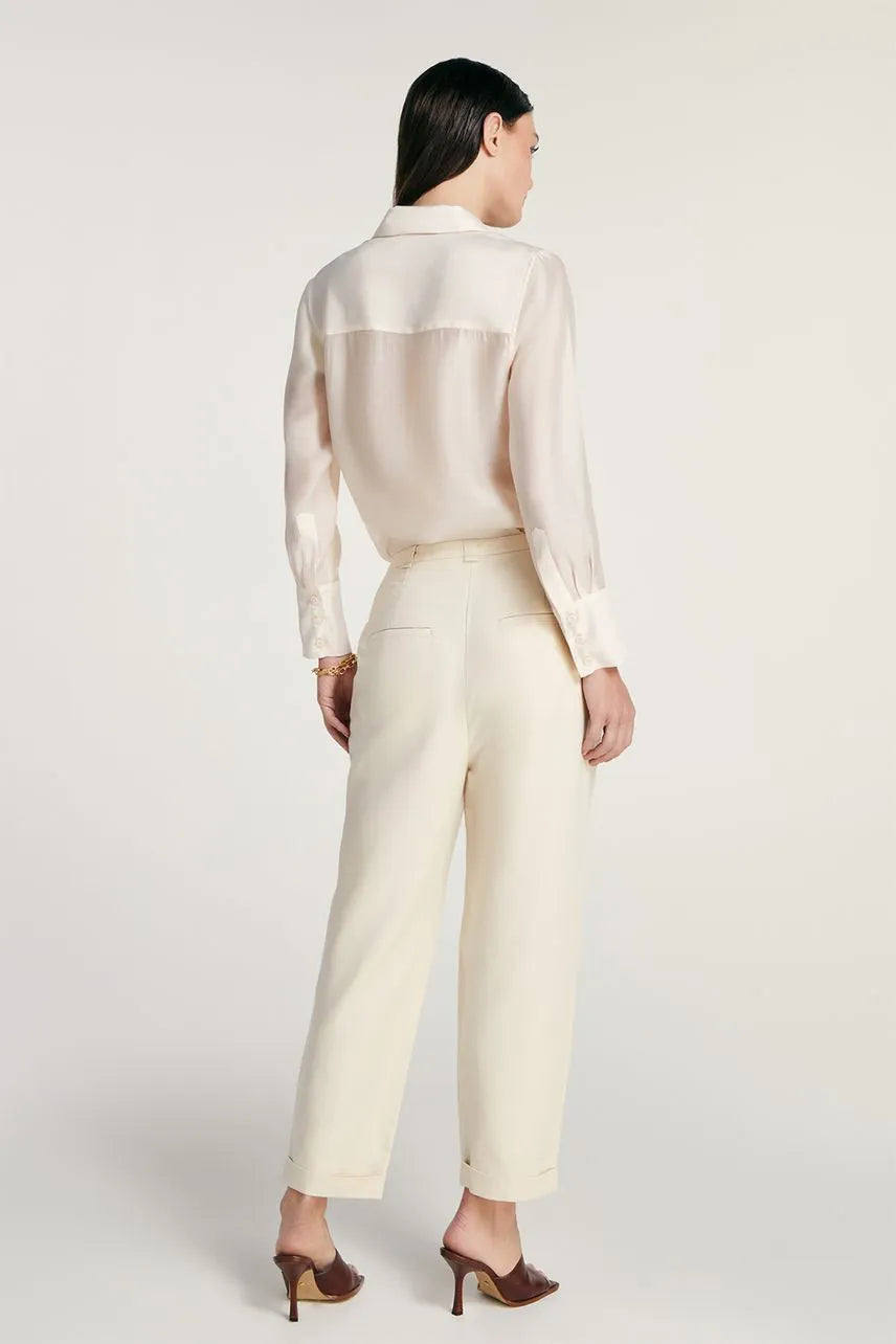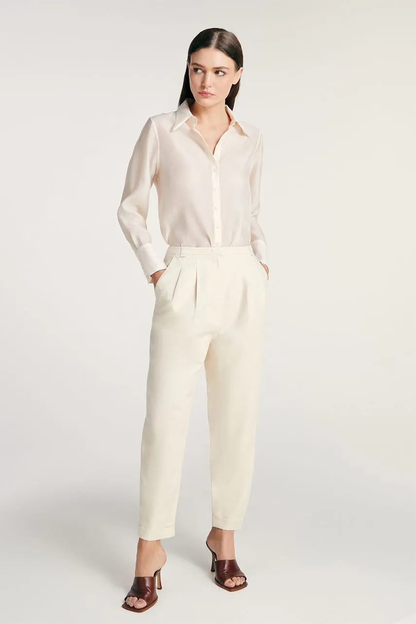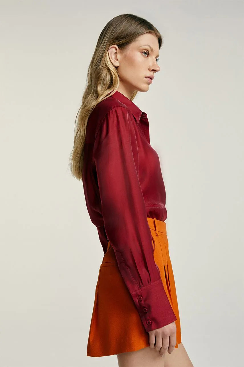 A camisa de organza traz elegância e leveza com sua transparência sofisticada. Com modelagem regular, mangas longas e fechamento frontal por botões, a peça é perfeita para composições refinadas. A barra lenço adiciona um leve movimento, criando um visual atemporal e versátil para diversas ocasiões.